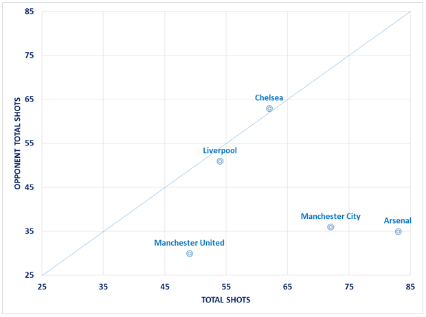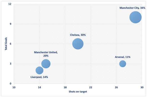 Manchester City has clearly outsmarted the other big clubs in EPL in almost every aspect – shooting, shooting accuracy, scoring, blocking, keeping clean sheets and most of all winning like a master. It will take enormous effort from the other teams to catch up with the Cityzens.