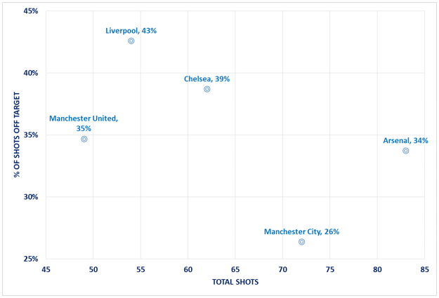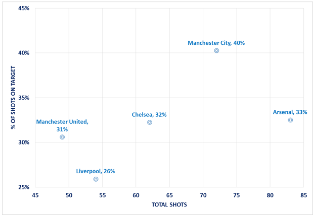 1. Arsenal strikeforce produce consistently more attempts with very less yield