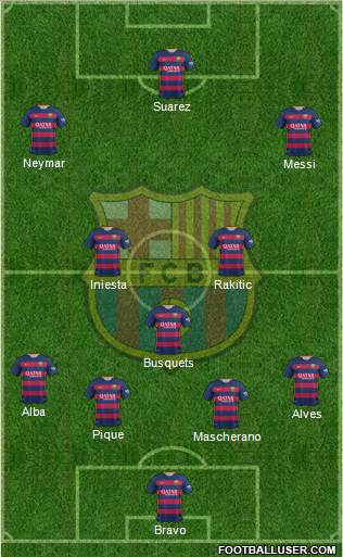 Probable Starting XI (4-3-3): Bravo; Alba, Pique, Mascherano, Alves; Rakitic, Busquets, Iniesta; Neymar, Suarez, Messi.