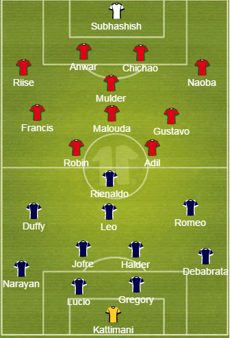 Probable Starting Lineup (4-1-3-2): Subashish(GK), Riise, Anwar, Chichao, Naoba; Mulder;Gustavo, Malouda, Francis; Robin, Adil.