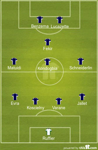 Predicted Line Up: Ruffier; Evra, Koscielny, Varane, Jallet; Matuidi, Kondogbia, Schneiderlin; Fekir; Benzema, Lacazette.