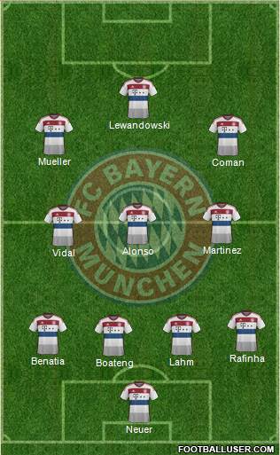 Possible starting XI: Neuer; Lahm, Boateng, Benatia,Rafinha, Alonso, Martinez, Vidal, Muller, Lewandowski, Coman.