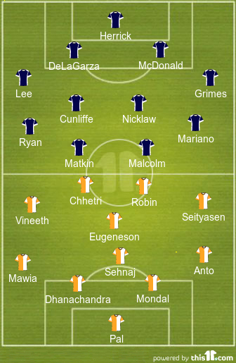 Possible Starting XI (4-4-2): Subrata Pal; Lalchhuan Mawia, Dhanachandra Singh, Arnab Mondal, Rino Anto; C K Vineeth, Eugeneson Lyngdoh, Sehnaj Singh, Seityasen Singh; Robin Singh, Sunil Chhetri