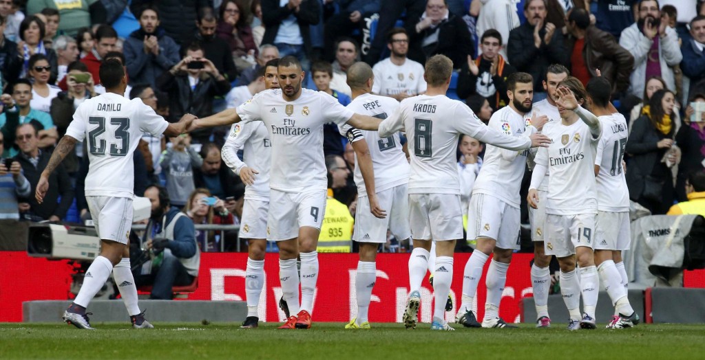 Real Madrid bounced back from their embarrassing elimination from the Copa del Rey for fielding an ineligible player in midweek by cruising to a 4-1 victory over Getafe on Saturday.Karim Benzema was restored to the starting line-up and scored his first two goals since being caught up in a blackmail scandal involving French international teammate Mathieu Valbuena inside 16 minutes. Gareth Bale and Cristiano Ronaldo then made it 4-0 before half-time before Alexis pulled a goal back for Getafe 21 minutes from time. Victory moves Madrid up to second and cuts the gap on Barcelona at the top of the table to three points. However, Barca can restore their six-point advantage when they travel to Valencia and Atletico Madrid can retake second place with victory at Granada later on Saturday. Benzema, Bale and Ronaldo started a league game for just the fourth time this season and just as in early season thrashings of Real Betis and Espanyol, their presence restored Madrid’s fire-power up front. Any sign of the fans’ frustration at the club’s latest gaffe in being eliminated from the Cup due to an administrative error was eased when Benzema fired home from Pepe’s fine cross after just five minutes. Benzema has rarely featured in the last two months due to an ongoing hamstring injury allied to his off-field problems. However, the Frenchman looked back to his best as he was only denied a second with a bullet header by a brilliant save from Vicente Guaita moments later. Benzema did double Madrid’s advantage on 16 minutes when he slotted into the bottom corner from Bale’s headed cut-back after Ronaldo appeared to have been fouled inside the area. The one way traffic continued as Bale flashed a shot just wide from 25 yards and then forced Guaita into a more comfortable stop from the edge of the area. . However, the Welshman wasn’t to be denied 10 minutes before half-time when he showed great composure to finish from Ronaldo’s knockdown to score for the second consecutive league game for the first time since January. Ronaldo finally got in on the act three minutes later at the end of a devastating counter-attack as he latched onto Toni Kroos’s fine through ball to register his 17th goal of the season. Understandably, Madrid’s intensity dipped after the break, but Benzema did have a chance to seal his first hat-trick in five years when he curled well over from the edge of the area. Instead it was Getafe who rounded off the scoring when Alexis powered home Pedro Leon’s corner to reduce the arrears. By AFP |
