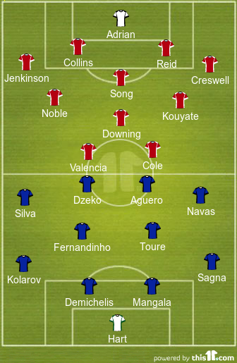 Probable Line-up (4-1-2-1): Adrian; Jenkinson, Reid, Collins, Creswell; Song; Noble, Kouyate; Downing; Valencia, Cole