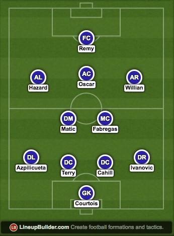 Probable lineup (4-2-3-1): Courtois (GK), Ivanovic, Terry, Cahill, Azpilicueta; Matic, Fabregas; Hazard, Oscar, Willian; Remy