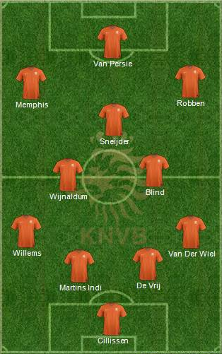 Possible Starting XI (4-2-3-1): Cillessen; Van der Wiel, De Vrij, Martins Indi, Willems; Blind, Sneijder, Wijnaldum, Robben, Depay; Van Persie