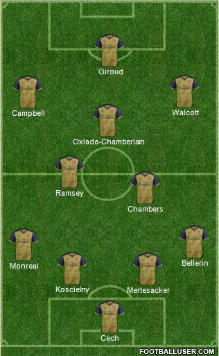 Probable Starting XI (4-2-3-1): Cech; Monreal, Koscielny, Mertesacker, Bellerin; Ramsey, Chambers; Campbell, Oxlade Chamberlain, Walcott; Giroud.