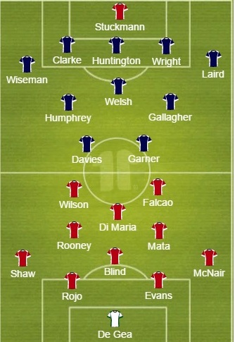 Expected Starting Eleven: De Gea (GK); Rojo, Evans, McNair, Shaw; Blind, Rooney, Di Maria, Mata; Falcao, Wilson