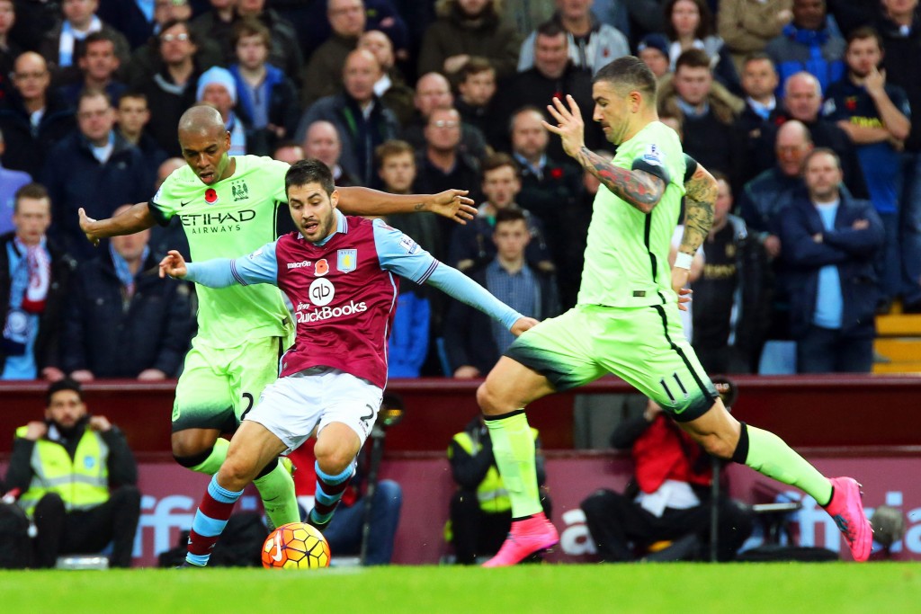 As expected from a team under new management, Villa began the contest with great vigour and purpose, but the first real threat came when City’s Aleksandar Kolarov was released by Sterling on the overlap and his cross flashed across the face of goal.