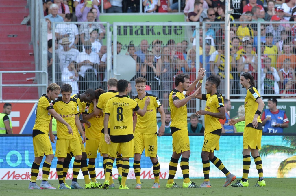 Dortmund claimed their sixth win in all competitions under new coach Thomas Tuchel as defender Matthias Ginter, Marco Reus, Shinji Kagawa and Pierre-Emerick Aubameyang scored second-half goals.