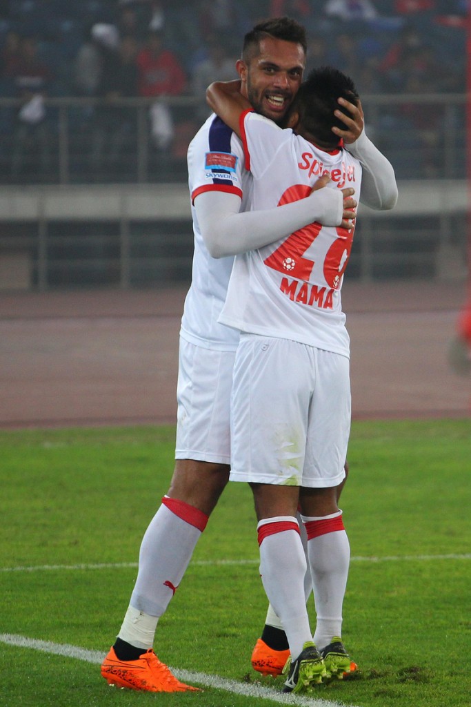 Delhi Dynamos went extremely close on the 41st minute after Adil Nabi went past Pronay Halder to cut back for Gustavo Dos Santos but his curled effort narrowly misses the target. Gustavo then made amends for his miss, as he won the ball with his relentless pressure on Narayan Das on the 43rd minute before laying it off for Chicao, who produced a sumptuous cross for Robin Singh to head home the ball.