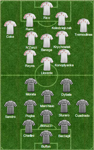 Probable Starting Lineup (3-5-2):Buffon(Gk); Barzagli, Bonucci, Chiellini; Cuadrado, Sturaro, Pogba, Marchisio, Sandro; Dybala, Morata
