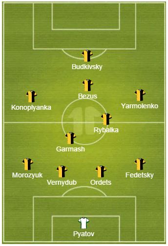 In attack, we could see the duo of Konoplyanka and Yarmolenko on the wings with Roman Bezus playing as the attacking midfielder. Pylyp Budkivsky is expected to start as the striker.