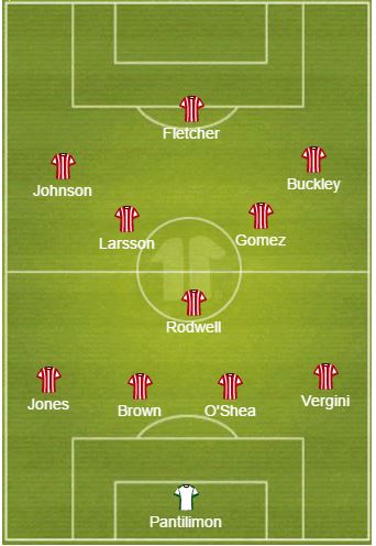 Predicted Starting XI: Pantilimon, Vergini, Brown, O’Shea, Jones, Rodwell, Gomez, Larsson, Buckley, Johnson, Fletcher