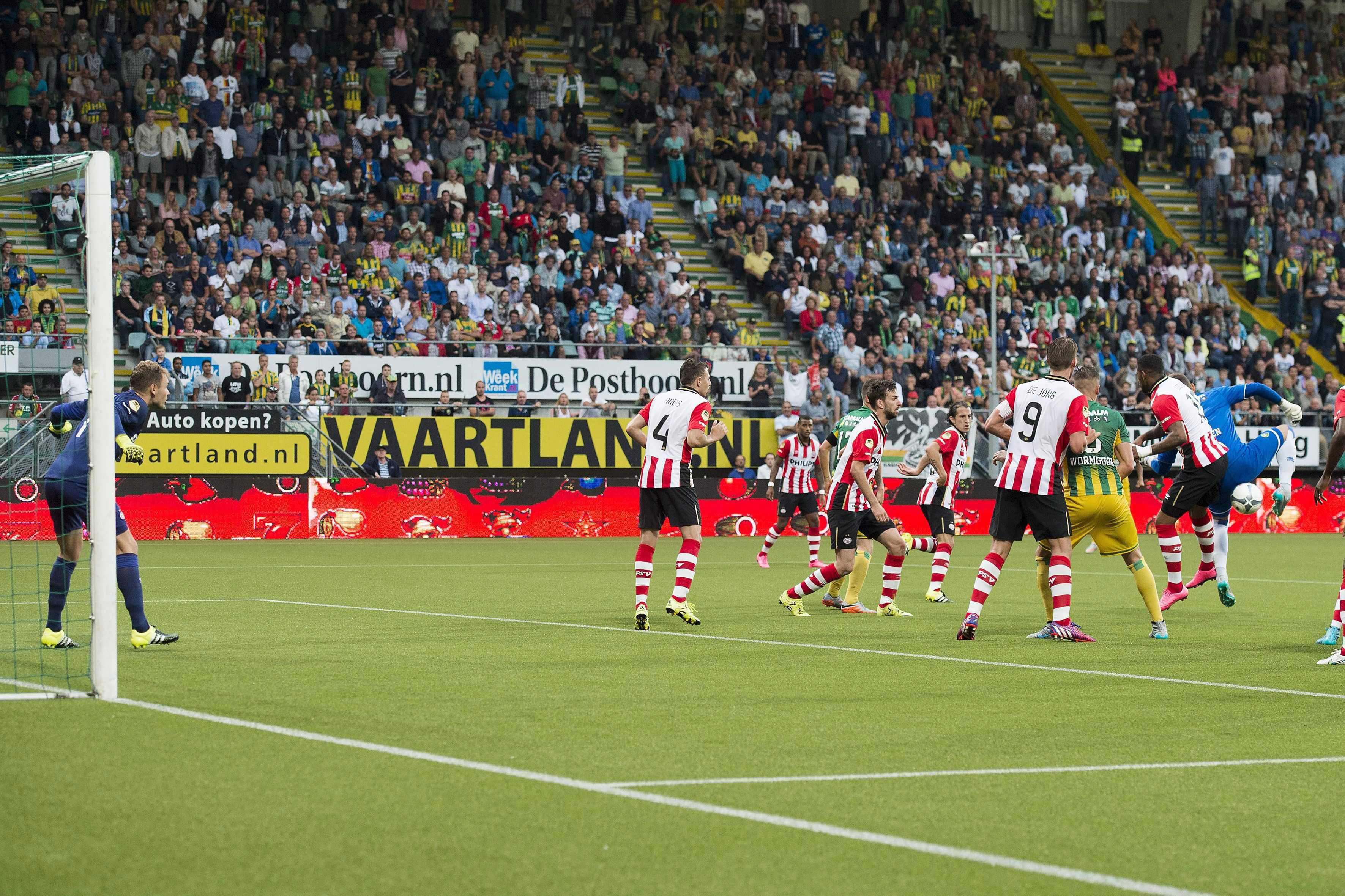 The Danish goalkeeper went up for a free kick in injury time with his side trailing 2-1 to current Eredivisie champions PSV Eindhoven, and managed to score quite a stunning goal when he diverted the ball into the back of the net with a flying back-heel, eight yards away from goal.