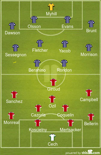 Predicted Line-up: (4-4-2): Myhll, Dawson, Evans, Olsson, Brunt; Morrison, Yacob, Fletcher, Sessegnon; Berahino, Rondon.