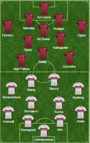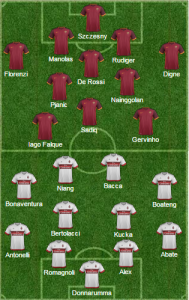 Probable Starting Line-up (4-3-3): Szczesny(GK); Florenzi, Manolas, Rudiger, Digne; Nainggolan, De Rossi, Pjanic; Gervinho, Sadiq, Iago Falque