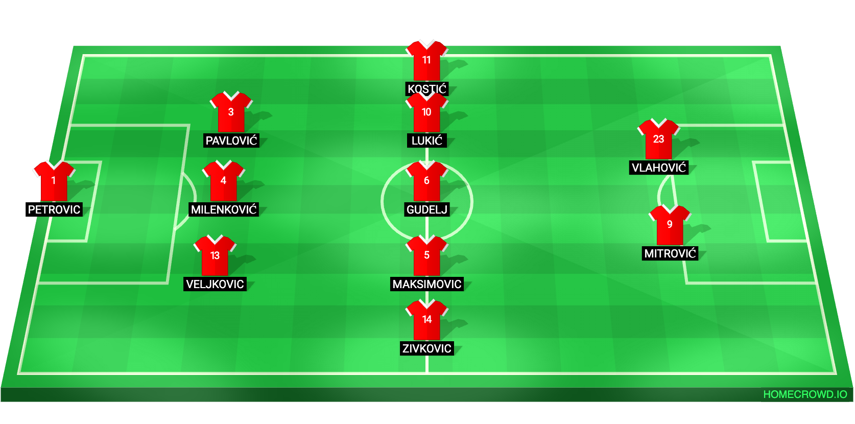 Probable Lineup (3-5-2): Petrovic; Veljkovic, Milenkovic, Pavlovic; Zivkovic, Maksimovic, Gudelj, Lukic, Kostic; Mitrovic, Vlahovic
