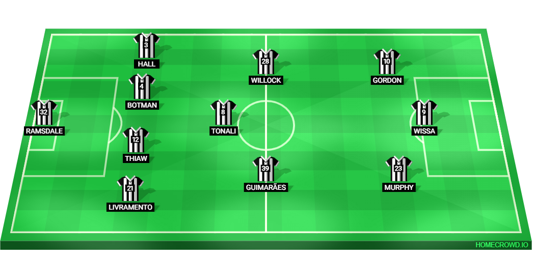 Probable Lineup (4-3-3): Ramsdale; Livramento, Thiaw, Botman, Hall; Bruno Guimaraes, Tonali, Willock; Murphy, Wissa, Gordon