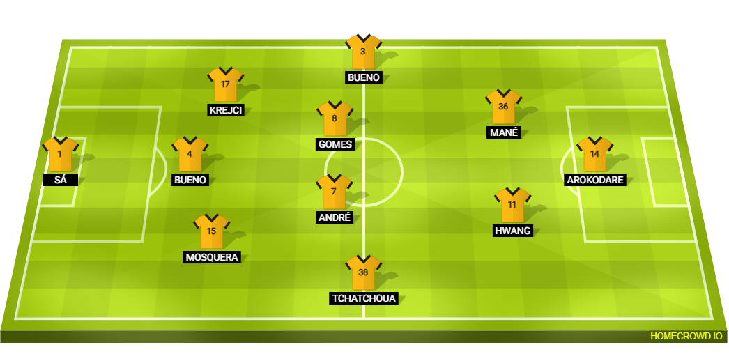 Probable Lineup (3-5-2): Sa; Mosquera, Santiago Bueno, Krejci; Tchatchoua, Andre, Joao Gomes, Hugo Bueno; Hwang, Mane; Arokodare
