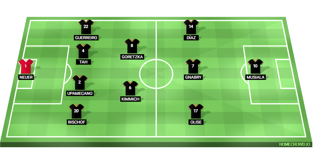 Probable Lineup (4-2-3-1): Neuer; Bischof, Upamecano, Tah, Guerreiro; Kimmich, Goretzka; Olise, Gnabry, Diaz; Musiala