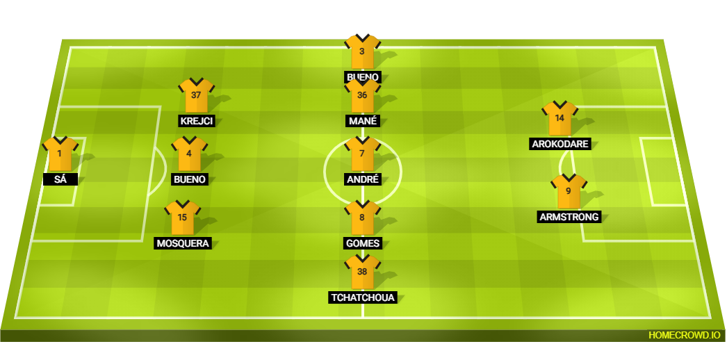 Probable Lineup (3-5-2): Sa; Mosquera, Santiago Bueno, Krejci; Tchatchoua, Joao Gomes, Andre, Mane, Hugo Bueno; Armstrong, Arokodare