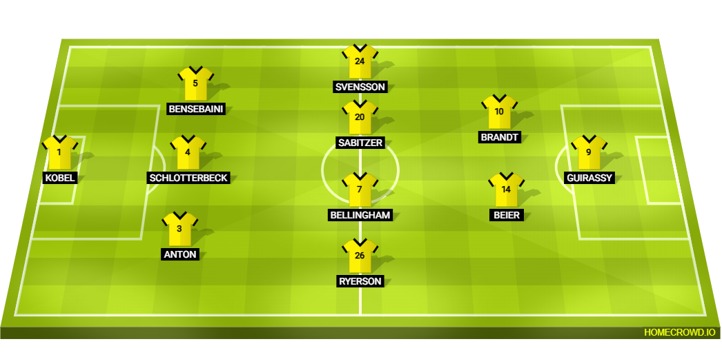 Probable Lineup (3-4-2-1): Kobel; Anton, Schlotterbeck, Bensebaini; Ryerson, Jobe Bellingham, Sabitzer, Svensson; Beier, Brandt; Guirassy