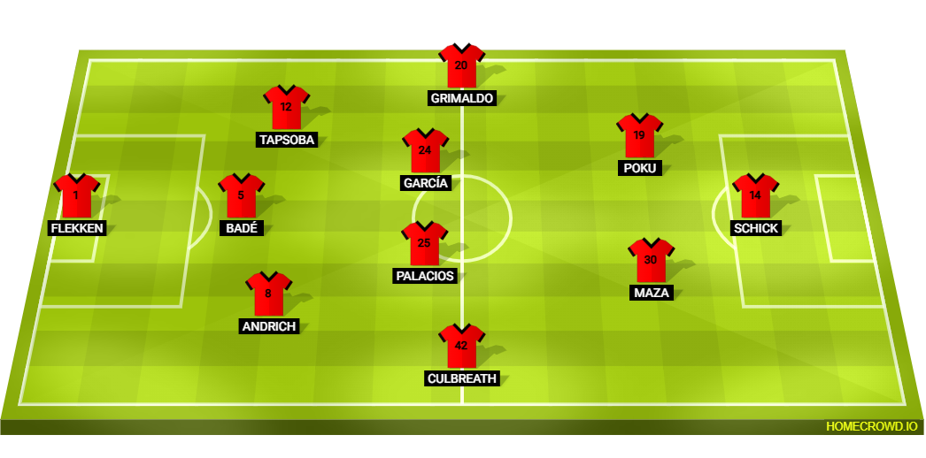 The wide duo will provide width in the final third and protect the three centre-backs. As for the midfield unit, Exequiel Palacios will line up alongside Aleix Garcia in the middle of the park, with Ibrahim Maza and Ernest Poku reprising the more advanced roles. Finally, Patrik Schick will spearhead the Bayer Leverkusen attack against Borussia Dortmund this weekend.