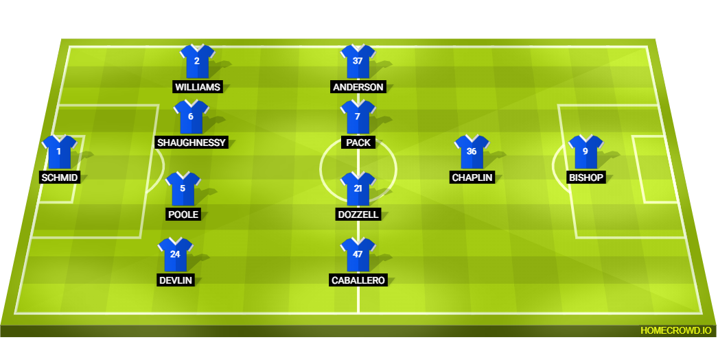 Probable Lineup (4-4-1-1): Schmid; Devlin, Poole, Shaughnessy, Williams; Caballero, Dozzell, Pack, Anderson; Chaplin; Bishop