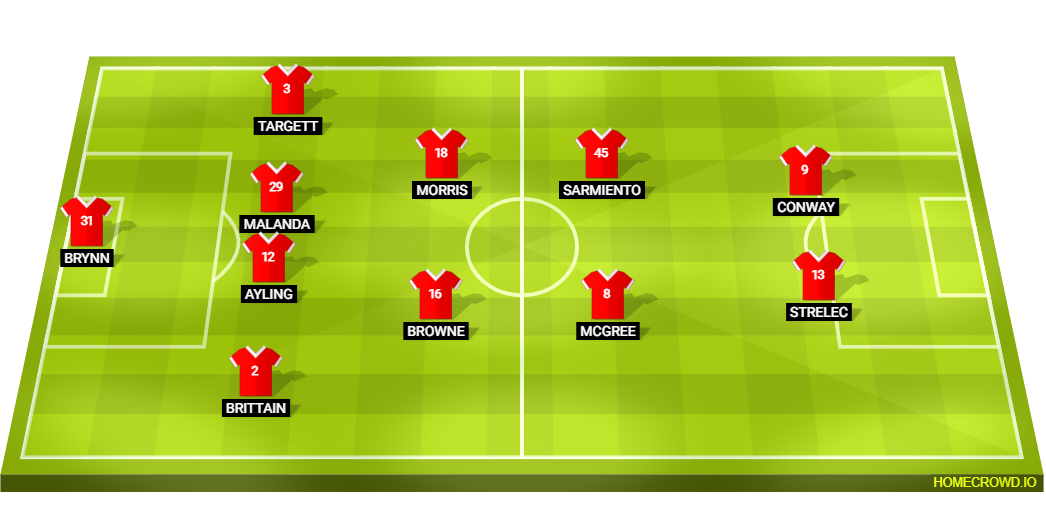 Probable Lineup (4-2-2-2): Brynn; Brittain, Ayling, Malanda, Targett; Browne, Morris; McGree, Sarmiento; Strelec, Conway