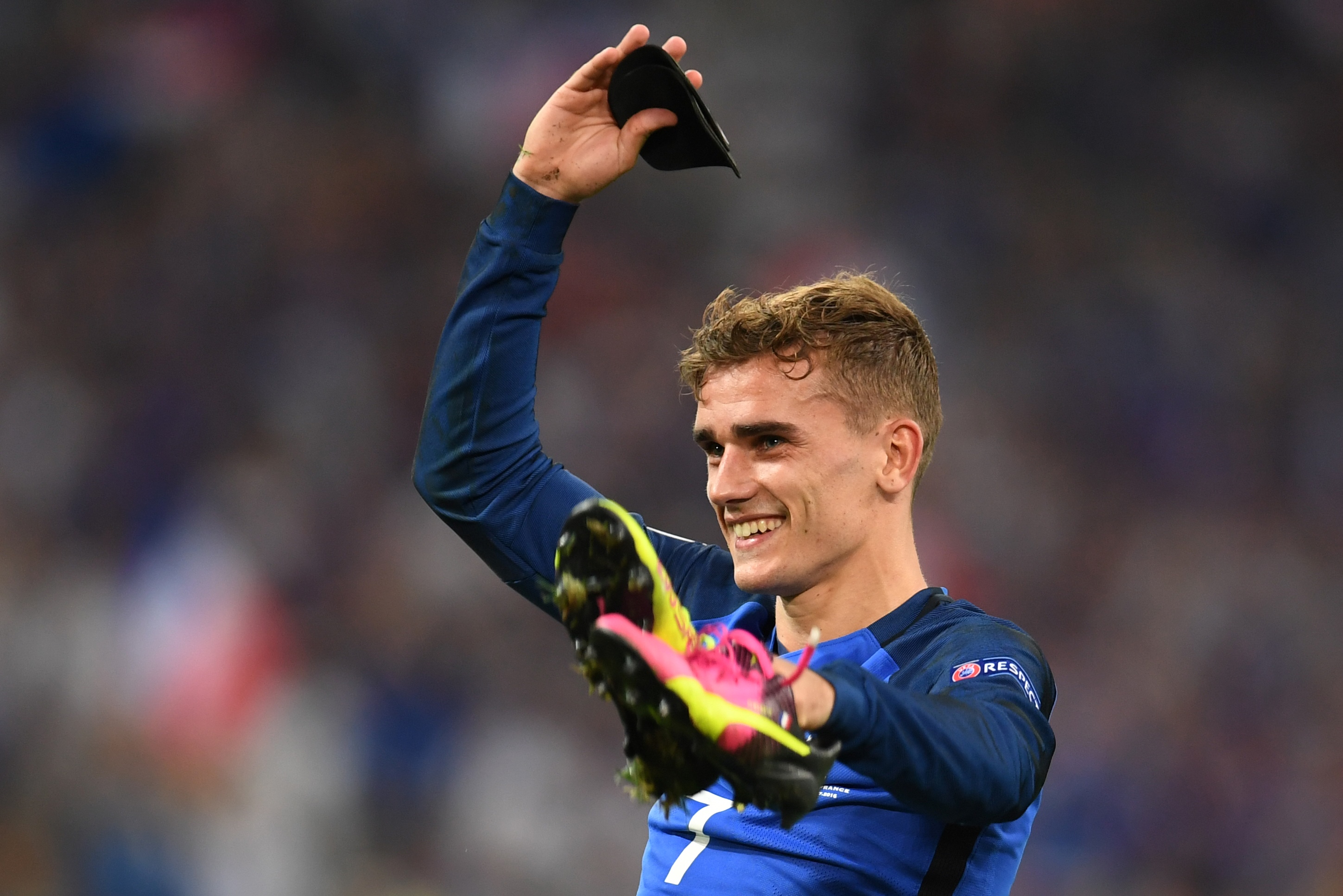 MARSEILLE, FRANCE – JULY 07: Antoine Griezmann of France salutes to supporters after his team’s 2-0 win in the UEFA EURO semi final match between Germany and France at Stade Velodrome on July 7, 2016 in Marseille, France. (Photo by Lars Baron/Getty Images)