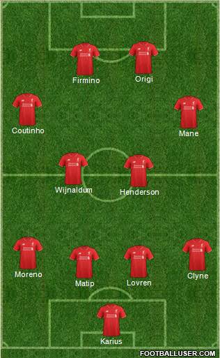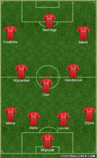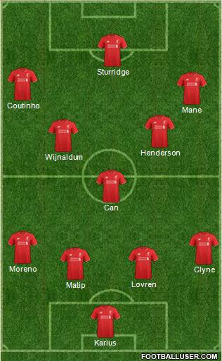 Joel Matip and Dejan Lovren will feature at the heart of defense, flanked by Nathaniel Clyne and Alberto Moreno, and with Lorris Karius in goal. German defensive midfielder Emre Can would be the only one tasked with shielding the defence, while Georginio Wijnaldum and Jordan Henderson are likely to play behind the wingers Sadio Mane and Philippe Coutinho. The number one striker for Jurgen Klopp will ideally be Daniel Sturridge. However, the injury problems that have plagued the Englishman could mean a break for young Belgian forward Divock Origi.