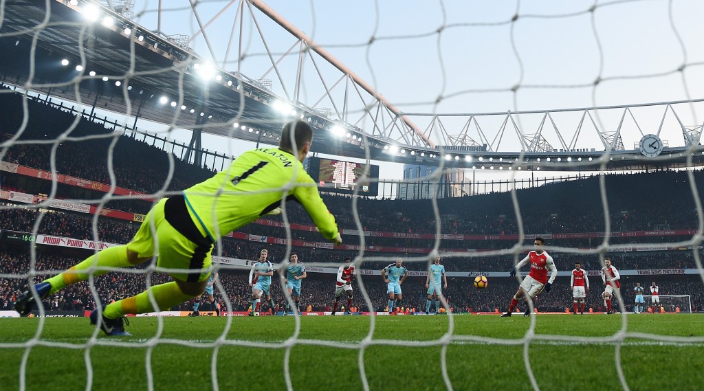 However, Laurent Koscielny then won Arsenal a penalty – although it was wrongly given as the Frenchman was offside when the ball was played into the box – which Alexis Sanchez brilliantly converted with a panenka under immense pressure.