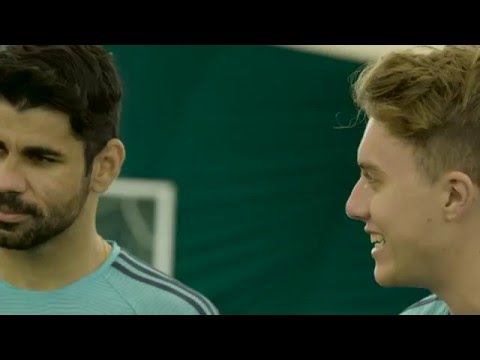 Two Chelsea FC academy players came up against the Spaniard in training as both of them tried to stop him from scoring. However, the two were successful just twice with Costa finding the back of the net on every other attempt.