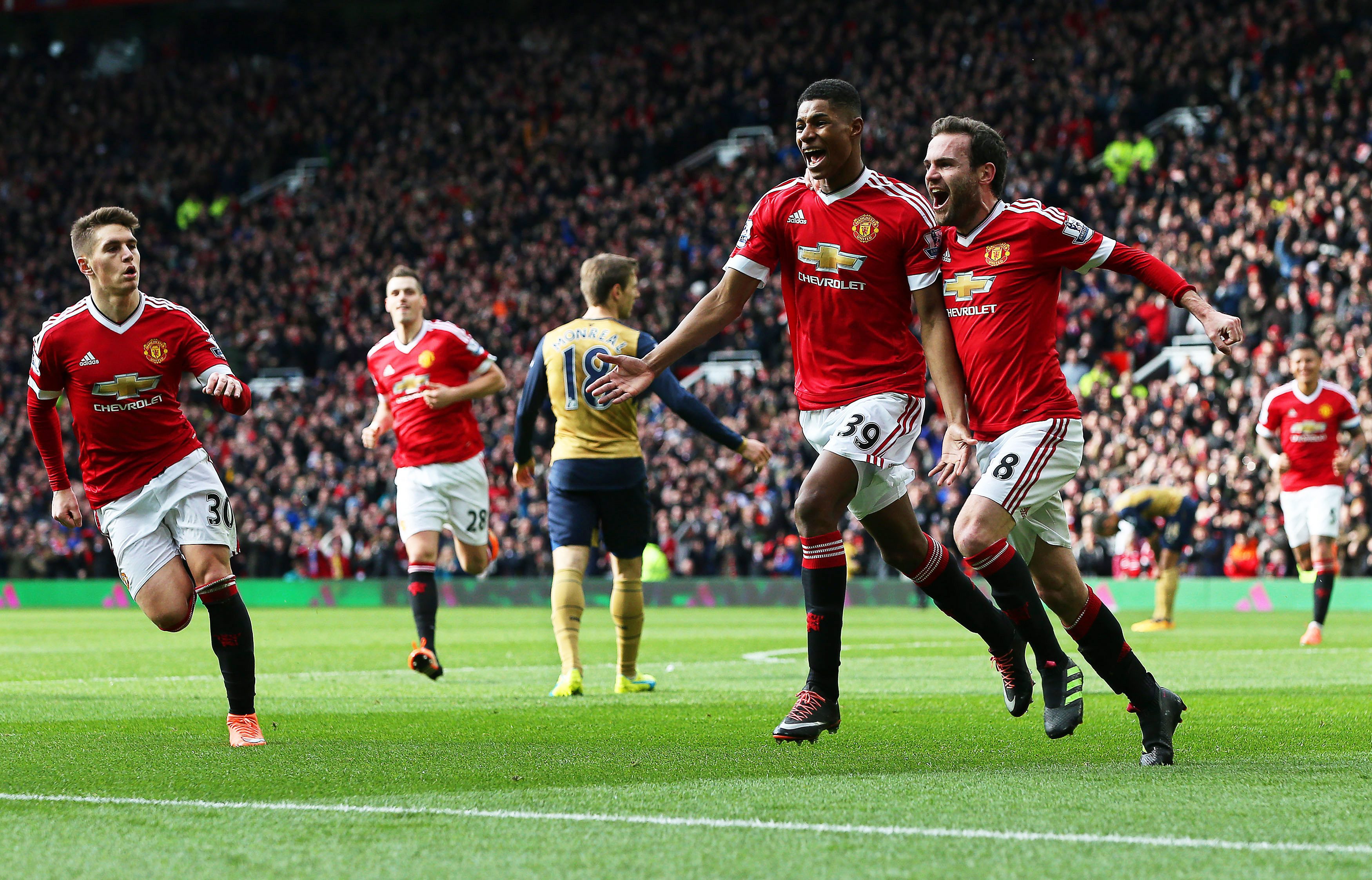 Europa League hero Marcus Rashford continued where he left off against Midtjylland by scoring twice in Manchester United’s remarkable 3-2 win over Arsenal at Old Trafford on Sunday.