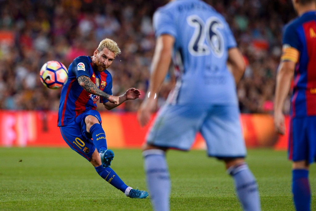 His first strike was an impressive team goal that saw 8 outfielders play a hand in creating the goal before the Argentine dribbled it past the goalkeeper. The goal took the score to 2-0 after Luis Suarez had given the Catalans the lead.