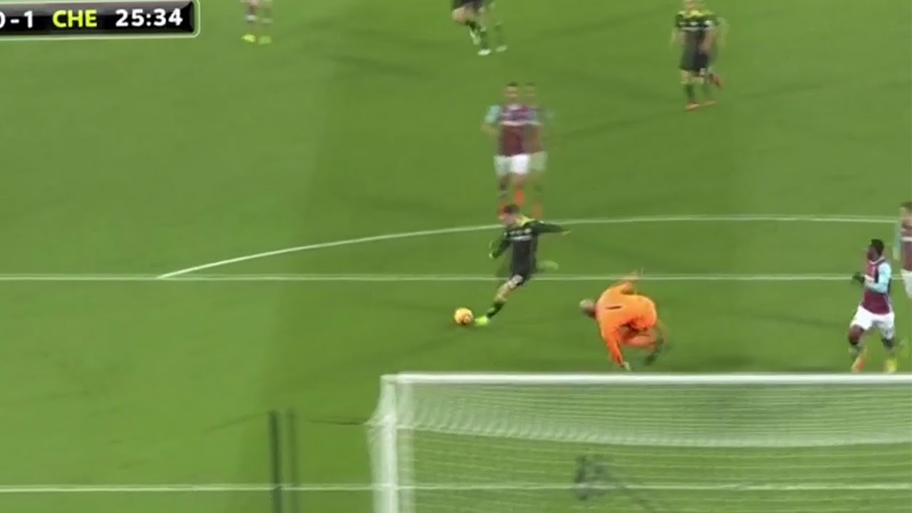 N’Golo Kante then intercepted a pass from Robert Snodgrass to initiate the counter as he released Hazard into the West Ham half. The Belgium then drove through along with Pedro, before playing a one-two with the Spaniard and finally rounding Darren Randolph to break the deadlock for the Blues.