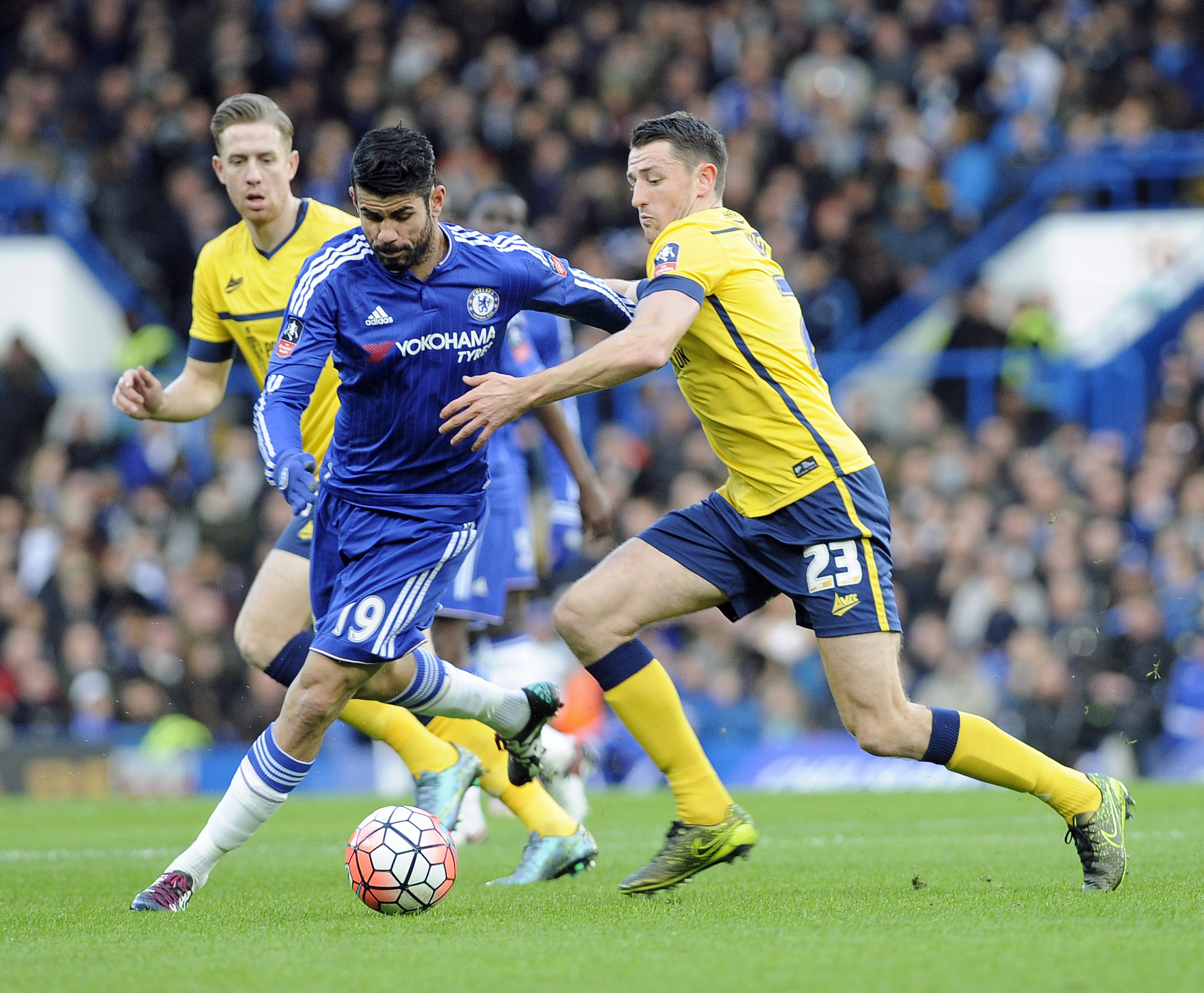 Diego Costa ended another troubled week on a high note as the striker put Chelsea on course for the FA Cup fourth round with the opener in their 2-0 win over third tier Scunthorpe on Sunday.Costa and team-mate Oscar almost came to blows before being separated by their fellow players after an aggressive knee-high tackle on the Spain striker by his Brazilian colleague sparking a furious exchange during a training session this week. Blues interim boss Guus Hiddink had tried to laugh off the incident, but the ugly scene was the latest controversial moment involving the temperamental Costa and threatened to cast a shadow over the start of Chelsea’s bid to win the FA Cup for the first time since 2012. Costa was on his best behaviour on this occasion as he put the Blues ahead early on at Stamford Bridge before teenage midfielder Ruben Loftus-Cheek came off the bench to seal the win with his first Chelsea goal in the second half. Hiddink is now unbeaten in four matches since replacing the sacked Jose Mourinho in December and, after winning the FA Cup in his previous spell as Chelsea interim boss in 2009, he must be dreaming of a return to Wembley in May. Inevitably, Costa was in the thick of the action as Chelsea took the lead with their first incisive attack in the 13th minute. Branislav Ivanovic whipped a dangerous cross towards Costa, whose run caused panic in the Scunthorpe rearguard. As Costa stretched to reach the ball in the six-yard box, he got the slightest of touches to divert it goalwards before a deflection off Scunthorpe defender Laird sent it into the far corner. Costa’s eighth goal of the season, and his fourth in his last three appearances, was the prelude for a period of sustained Chelsea pressure. Cesc Fabregas nearly doubled Chelsea’s lead moments later with a rising long-range strike that forced a superb tip over from Scunthorpe goalkeeper Luke Daniels. ContentiousFabregas also unfurled a long pass that put Pedro Rodriguez through on goal for a fierce shot that Daniels pushed over. Oscar had publicly played down his row with Costa and there appeared to be no lingering bad feelings as Costa set up the Brazilian for a shot that curled narrowly wide from the edge of the penalty area. Battered in the opening stages, Scunthorpe finally had their first sight of goal when Gary Cahill bravely used his head to block Stephen Dawson’s stinging strike. It was at that point that Hiddink’s team began to lose a little focus and it needed a superbly timed challenge from Kurt Zouma to repel a dangerous break from Luke Williams just before half-time. Chelsea had suffered a humiliating fourth round exit from the competition against third tier Bradford last season despite holding the lead at one stage. And Hiddink, sensing Chelsea were in danger of losing their grip again, tried to perk up his side by sending on Loftus-Cheek in place of Oscar at the interval. Scunthorpe, mid-table in League One, pressed forward boldly and had a penalty appeal rejected by referee Craig Pawson when Kevin van Veen tumbled after being tripped by Ramires just inside the Chelsea area. It was a contentious decision and possibly a lucky escape for the Premier League champions, who made the most of their fortune with a second goal in the 68th minute. Cesar Azpilicueta advanced down the left before cutting a low cross back towards Loftus-Cheek and the 19-year-old Londoner steered home a cool finish from 10 yards. Jordan Clarke almost gave Scunthorpe a memorable consolation in the final moments, but his blistering shot cannoned back off the woodwork. By AFP |
