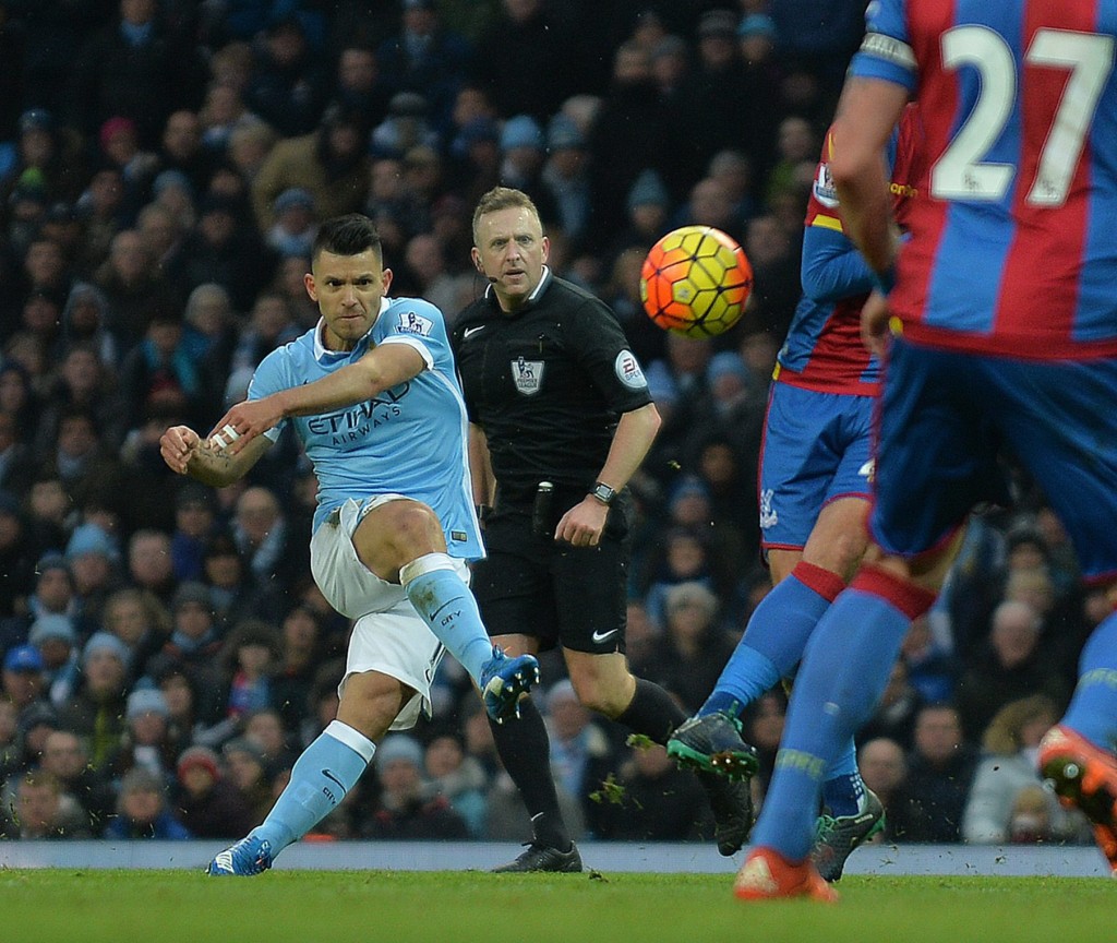 Sergio Aguero scored twice as Manchester City got their Premier League title challenge back on course with an emphatic 4-0 win over Crystal Palace at a snowy Etihad Stadium on Saturday.Aguero’s goals, which took his total for the season to 13, came in each half as City made up for their midweek blank against Everton when they failed to score in a home Premier League match for the first time in 12 months. Fabian Delph and David Silva scored either side of Aguero’s double as Manuel Pellegrini’s side recorded a seventh successive home win against the Londoners to go to the top of the table before Leicester’s late kick-off at Aston Villa on Saturday and Arsenal’s match at Liverpool on Sunday. Palace had failed to score in their previous four league games — their leanest run in the Premier League since 1998 — but should have ended their drought inside the first two minutes as they looked to make amends for a 5-1 drubbing at the Etihad in the League Cup in October Defender Damien Delaney stayed up in attack following a corner but, from Connor Wickham’s excellent cross, the Palace captain failed to beat Joe Hart with a header no more than eight yards out. That miss proved costly as City went in front 20 minutes later through the unlikely figure of Delph. The England international, given just his third league start of the season with Fernandinho still injured and Yaya Toure rested on the bench, and justified his inclusion with only the 11th league goal of his career. City’s frustration at failing to find a way through a well-drilled Palace defence was just starting to show when Delph cut in and fired a low, long-range shot into the bottom corner from almost 35 yards, which goalkeeper Wayne Hennessey allowed to skid under his dive. DeflectionThat should have given City a measure of control but just two minutes later Hart almost let that slip when his careless clearance went straight into the back of James McArthur. The ball dropped for Delaney but at full stretch the centre-back, a constant threat from set-pieces, hooked his effort just wide from the edge of the penalty area. Hart did better when turning a Yohan Cabaye free-kick round the post as Palace continued to push for an equaliser but four minutes before half-time City went 2-0 up. Aguero, who had not scored at the Etihad since November, saw his 25-yard shot deflected in via the head of Palace’s Scott Dann, the defender’s attempted clearance wrong-footing Hennessey. City were forced into a change seven minutes into the second half when Aleksandar Kolarov went off with a leg injury, Gael Clichy replacing him at left-back. Pellegrini didn’t wait much longer to make a tactical switch as Kelechi Iheanacho, who had scored in both of City’s previous wins over Palace this season, was replaced by Toure following a frustrating afternoon for the young forward. City still weren’t entirely comfortable as Palace kept forcing them back but Toure quickly made his mark as the hosts put the result beyond doubt. From City’s best move of the match, Silva, Aguero and Toure all combined before Kevin De Bruyne pulled the ball back for Aguero to tap in and make it 3-0. Palace replied with a long-range effort from Yohan Cabaye which flew just wide but they knew they were a beaten side. And they conceded a fourth goal with six minutes left as City finished in style. Aguero was again involved as he led a break-away before calmly squaring the ball for Silva, who scored his first league goal since the opening day of the season. By AFP |