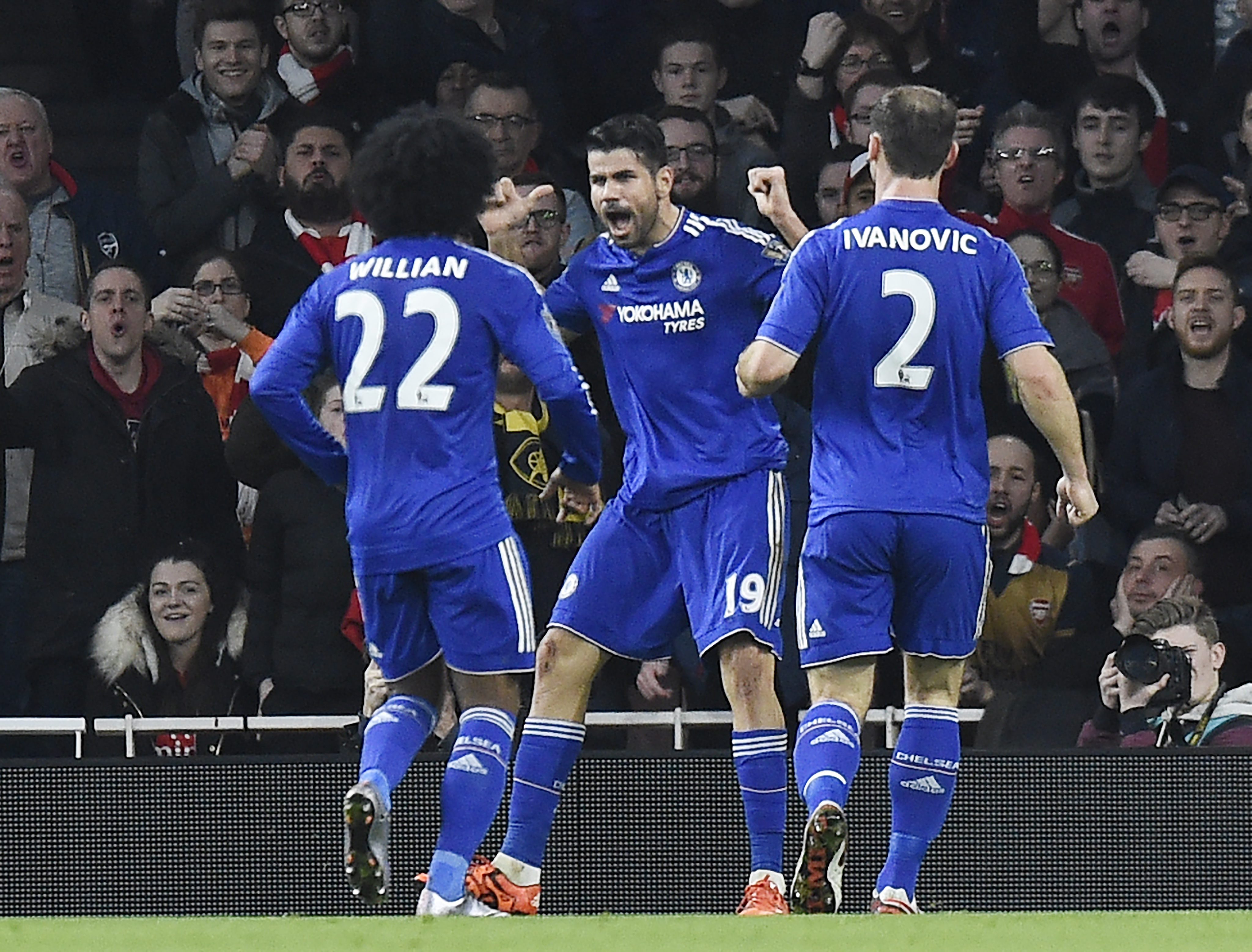Diego Costa scored as Chelsea renewed their hold over Arsenal with a 1-0 win at the Emirates Stadium on Sunday that dented their London rivals’ Premier League title hopes.Costa had been the central figure in Chelsea’s 2-0 win over Arsenal in September, when he goaded Gabriel into getting sent off, and he drew the foul that saw Per Mertesacker dismissed in the 18th minute before neatly converting the game’s only goal five minutes later. It was Arsenal’s first defeat in 10 home league games and left Arsene Wenger’s side in third place, below Manchester City on goal difference and three points shy of leaders Leicester City. Chelsea rose one place to 13th, calming any relegation concerns, after only their second win in six league games under interim manager Guus Hiddink. Arsenal, who welcomed Alexis Sanchez back from injury, have now gone nine league games without beating Chelsea, during which they have not scored in over nine and a half hours, and their latest failure left them without a win in three league games. Chelsea remain 14 points below the top four, but while Champions League qualification remains an unlikely goal, this was further proof that, even without the departed Jose Mourinho, they continue to hold the Indian sign over Arsenal. Arsenal recalled Mesut Ozil after he missed the 0-0 draw at Stoke City with a sore foot and he was a typical buzzing presence as the hosts forced their opponents back early on. But Arsenal lacked precision in the final third, Joel Campbell miscuing a volley from Theo Walcott’s cross and Mathieu Flamini slipping as he attempted to shoot, and the best chances fell to Chelsea. In the second minute, Petr Cech had to drop to his right to turn a shot from Oscar around the post after Laurent Koscielny had tamely conceded possession. When Cesar Azpilicueta crossed from the left, Willian was given two bites at the cherry, seeing his initial volley scuffed back to him by Mertesacker and then putting his follow-up straight at Cech. In the 18th minute came the game’s decisive moment. Costa reached Willian’s through-ball just ahead of Mertesacker and with the German already committed to a sliding tackle, the Chelsea striker tumbled and referee Mark Clattenburg brandished the red card. Hazard returnsGabriel, sent off for kicking Costa in September, unsurprisingly came on to plug the gap, but there were boos when the number held up on the fourth official’s electronic board was striker Olivier Giroud’s. It was typical of Costa to find himself centre-stage and barely a minute after Gabriel’s entrance, he stole between the Brazilian and Koscielny to convert Branislav Ivanovic’s cross with an adroit near-post volley. The Spain striker threatened to add a second before half-time, but after gathering Willian’s square pass with a clever touch that took him past Nacho Monreal, his shot was repelled by Cech. From the ensuing corner, Ivanovic’s header was headed off the line by Monreal. Arsenal finally got in behind Chelsea in first-half stoppage time when Aaron Ramsey clipped a pass into the area for Flamini, but the Frenchman — not renowned for his penalty-box prowess — jabbed a volley over. With Chelsea continuing to probe in the second half — ex-Arsenal favourite Cesc Fabregas seeing a strong penalty claim waved away after being impeded by Koscielny — Wenger turned to Sanchez. The Chilean, sidelined for 10 matches with a hamstring injury, replaced Campbell and spurned a chance to level when he took an airshot as the ball ricocheted around the Chelsea box following a free-kick. Costa departed, beneath a hail of boos, in the 68th minute, with Loic Remy coming on, while Eden Hazard made his return following a three-game groin injury lay-off as a replacement for Oscar. With Wenger watching anxiously from the corner of his technical area, a late chance fell to Flamini, but his deflected back-heel was fielded by Chelsea goalkeeper Thibaut Courtois. By AFP |