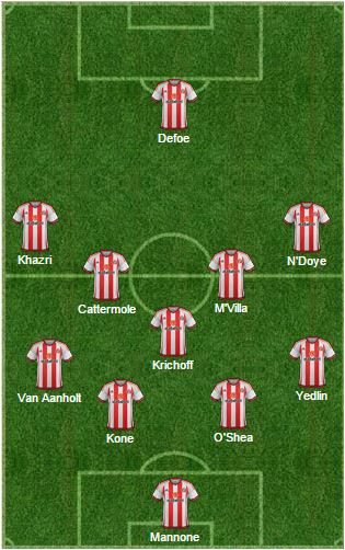 #SAFCXI v @ManUtd: Mannone, Yedlin, O’Shea, Kone, van Aanholt, Kirchhoff, Cattermole, M’Vila, Khazri, N’Doye, Defoe. pic.twitter.com/VtkcIJNWeP — Sunderland AFC (@SunderlandAFC) February 13, 2016