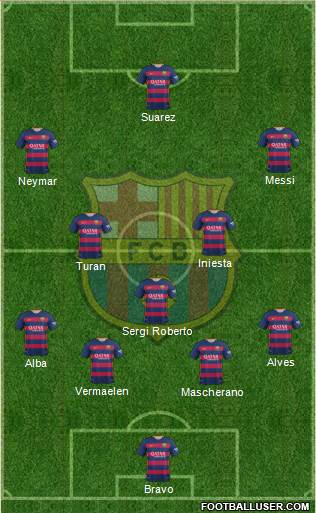 Probable Starting XI (4-3-3): Bravo; Alba, Vermaelen, Mascherano, Alves; Turan, Roberto, Iniesta; Neymar, Suarez, Messi.