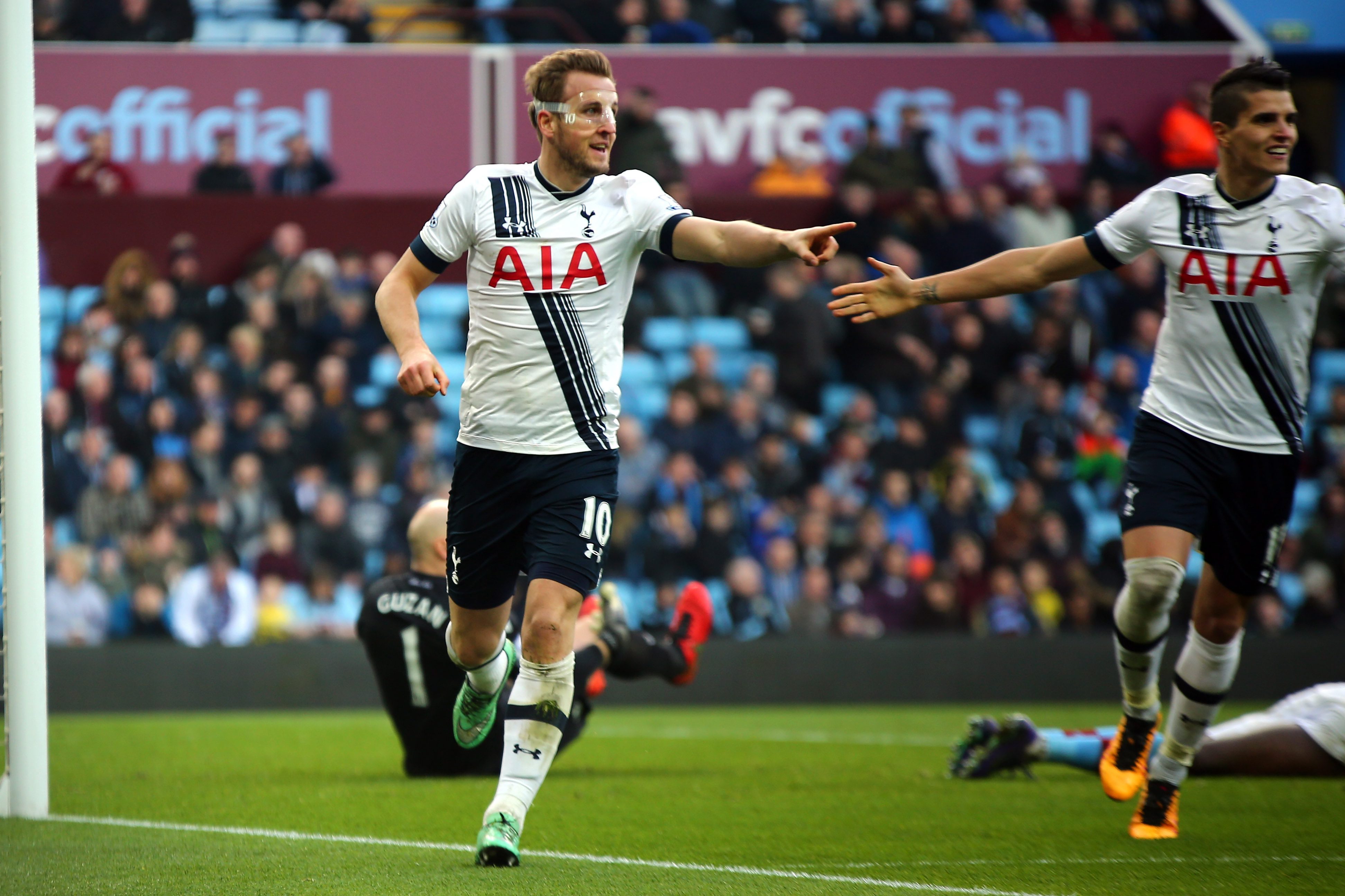 After Christian Eriksen had shot inches wide from distance, Guzan came to Villa’s rescue with an instinctive save to keep out a close-range effort from Kane following a cross by Danny Rose.