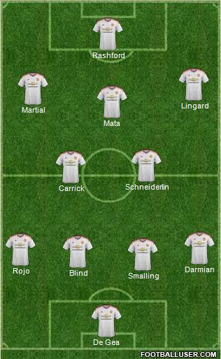 Starting XI:- De Gea, Darmian, Smalling, Blind, Rojo, Schneiderlin, Carrick, Lingard, Mata, Martial, Rashford