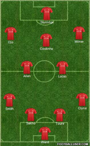 Starting XI:- Ward, Clyne, Toure, Sakho, Smith, Allen, Lucas, Ojo, Coutinho, Milner, Sturridge.