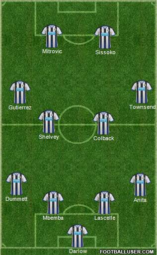 Starting XI:- Darlow, Dummett, Mbemba, Lascelle, Anita, Gutierrez, Shelvey, Colback, Townsend, Sissoko, Mitrovic.
