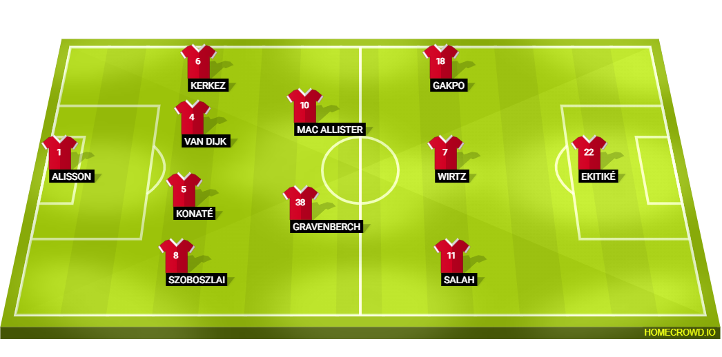 Predicted Liverpool XI: Alisson, Szoboszlai, Konate, van Dijk, Kerkez; Mac Allister, Gravenberch; Salah, Wirtz, Gakpo; Ekitike