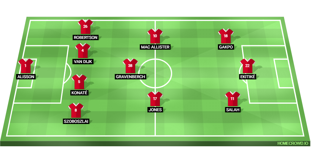 Predicted Liverpool XI: Alisson; Szoboszlai, Konate, van Dijk, Robertson; Jones, Gravenberch, Mac Allister; Salah, Ekitike, Gakpo