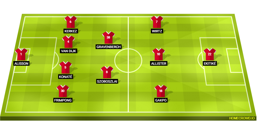 Predicted Liverpool XI: Mamardashvili; Frimpong, Konate, van Dijk, Kerkez; Szoboszlai, Gravenberch; Gakpo, Mac Allister, Wirtz; Ekitike